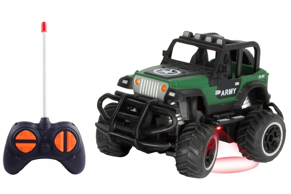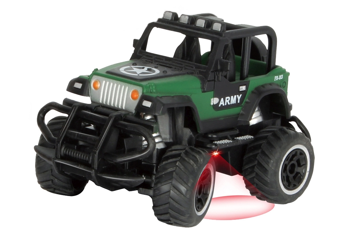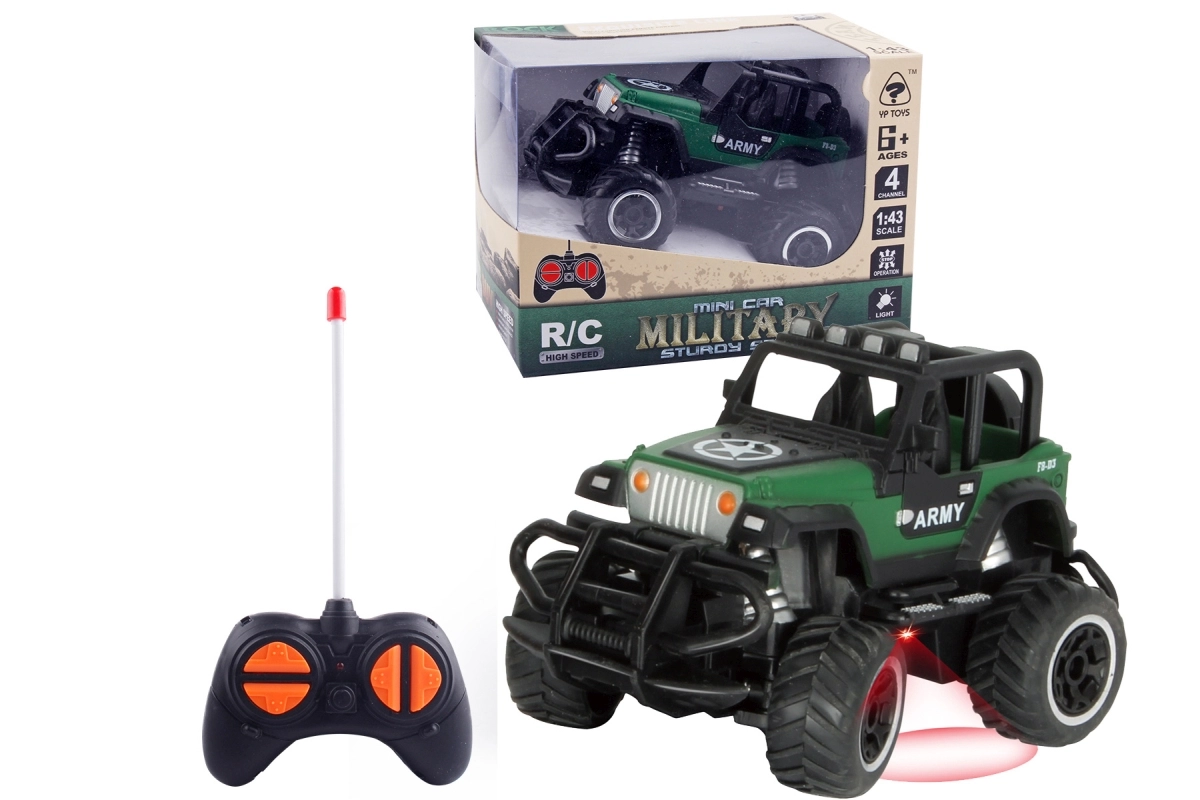 RC-modellen drives af fire AA-batterier, så den hurtigt og nemt er klar til kørsel. Med sit attraktive militære design og stabile chassis er den et perfekt valg for begyndere og små eventyrere.