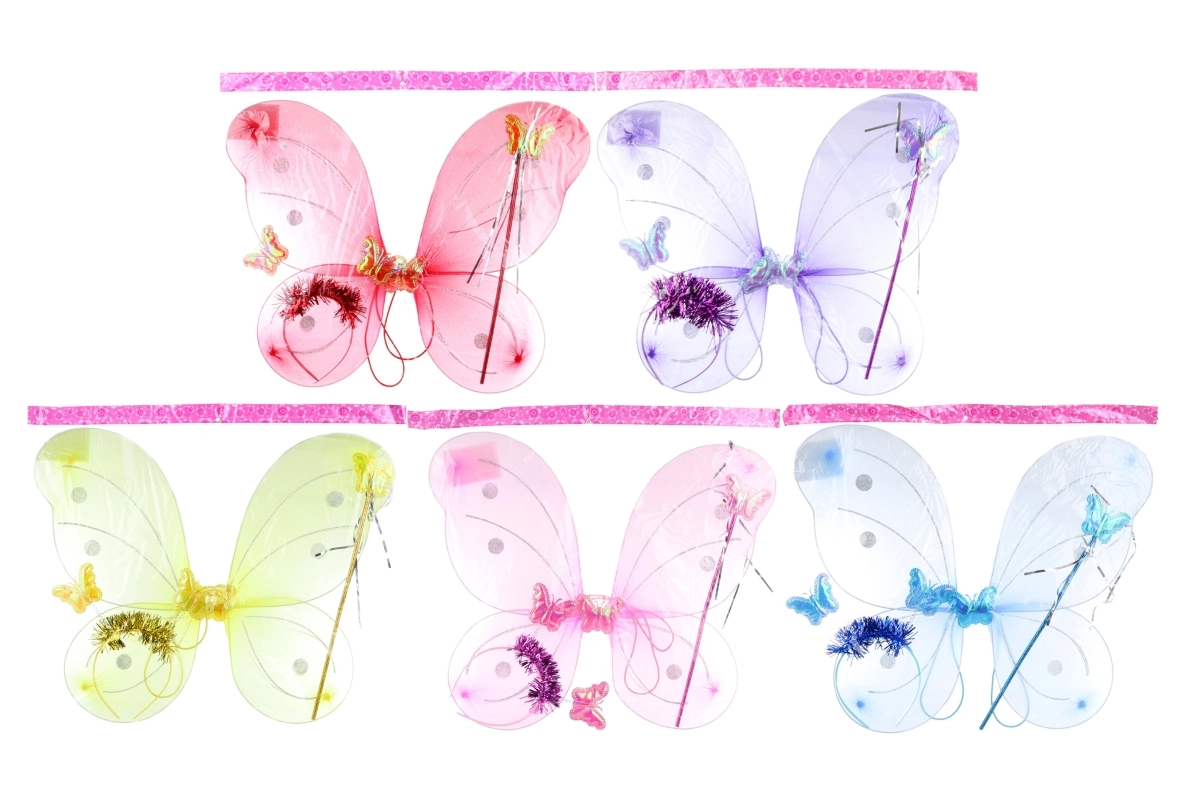 Forvandl en lille fe til karnevalets dronning. De glitrende sommerfuglevinger med hårbøjle og tryllestav bringer masser af sjov og en magisk stemning til enhver fest. Takket være de lette materialer er de behagelige at have på og nemme at tage på.