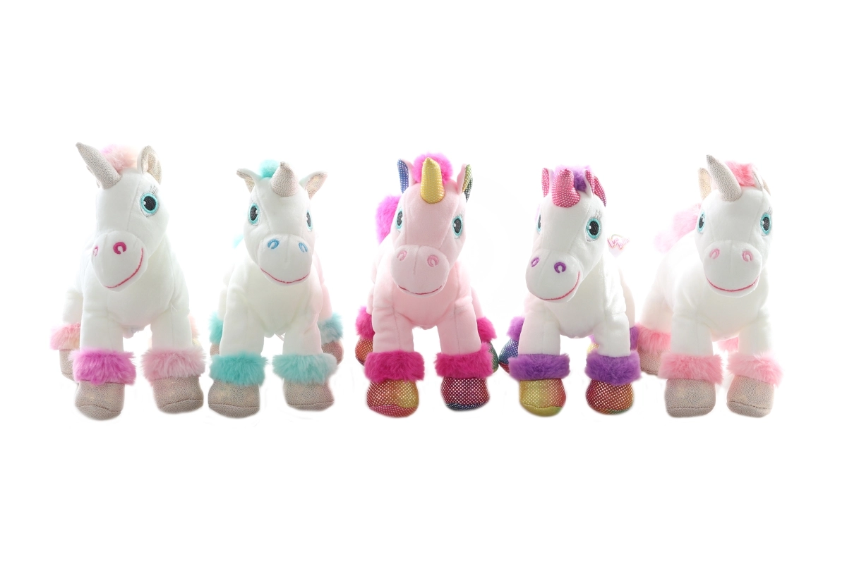 Denne plysenhjørning er den ideelle ledsager for både små og større børn. Takket være det bløde materiale er den perfekt til kram og beroligelse, mens den ved tryk afspiller magiske lyde, som stimulerer børns fantasi.