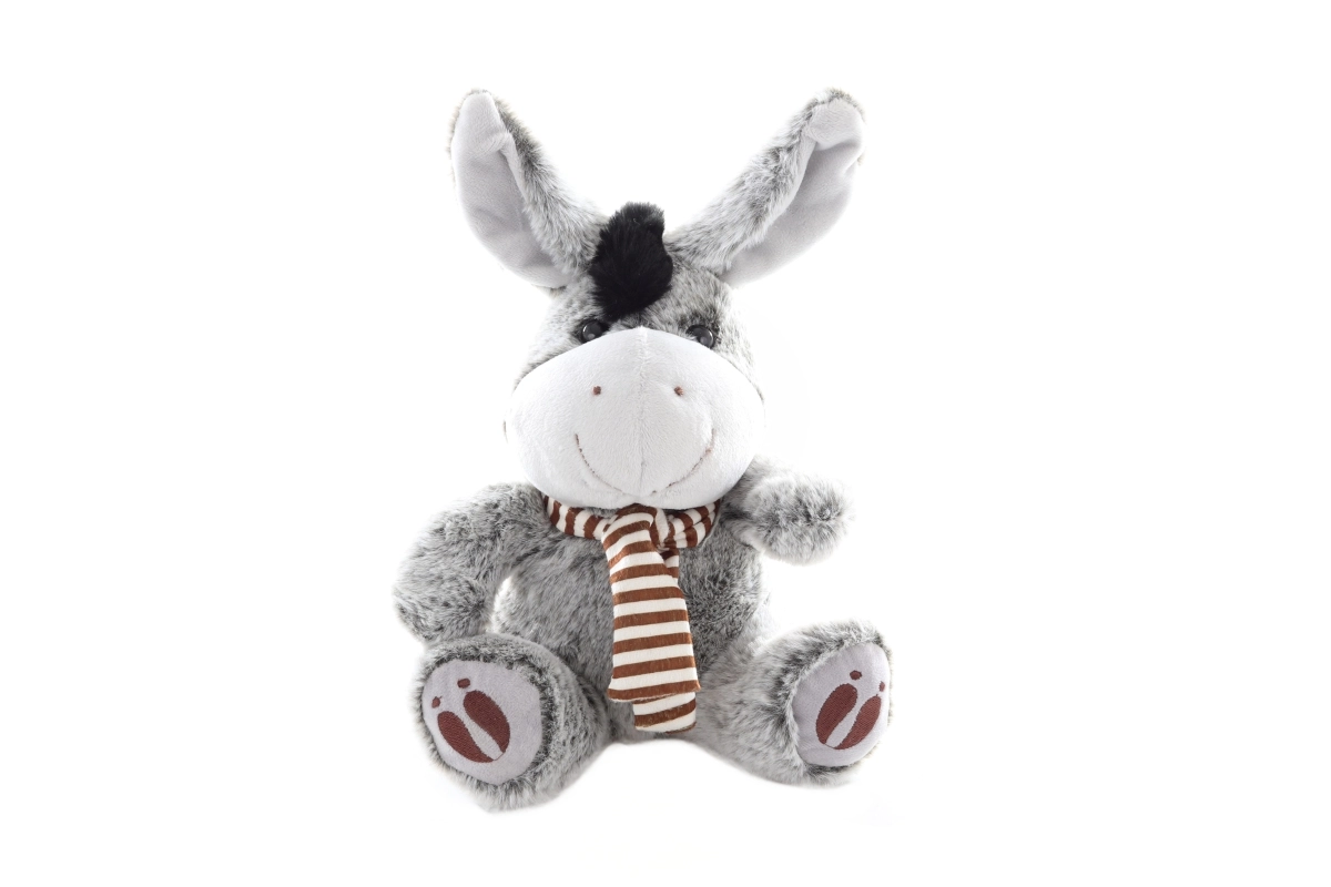 Dette bløde plysesel vinder straks børns hjerter. Takket være de kompakte mål er den nem at holde selv for de mindste og er ideel til at falde i søvn med, lege med og have med på rejser. Det neutrale æseldesign passer perfekt til både piger og drenge.