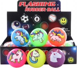 Sætter gang i enhver leg! Denne gummibold med magisk enhjørningemotiv aktiverer farverige lyseffekter ved kast eller tryk, som børn elsker. Den kompakte diameter på 5,5 cm passer perfekt i en lille barnehånd og giver masser af sjov både inde og ude.