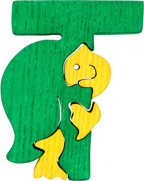 Træbogstav T – skildpadde fra Fauna. SIkre farver, massivt træ, udvikling af motorik og læring af alfabetet. Ideelt til børn fra 3 år og som dekoration.