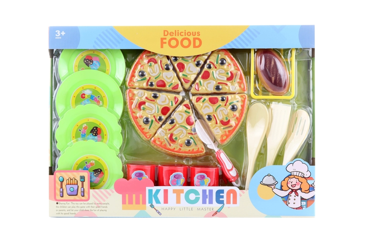 Dette farverige sæt med pizza i æske giver børn en autentisk oplevelse af madlavning og servering. Pizzaen er skåret i 6 stykker og suppleret med praktisk tilbehør, så børn kan planlægge deres egen fest og udvikle sociale færdigheder gennem fælles leg.