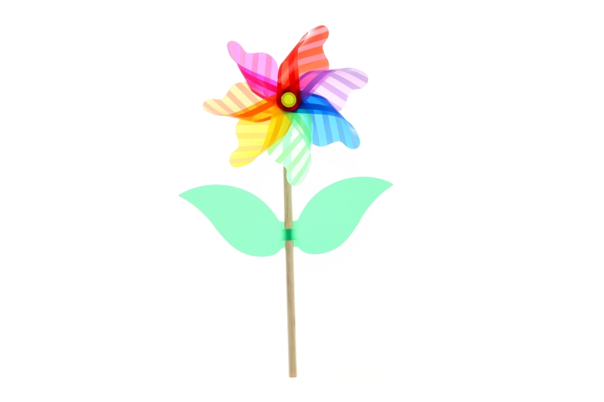 Vindmøllen leveres adskilt i en pose, og samlingen er nem og hurtig – ideel som en lille gave til børn, som havedekoration eller som en legende aktivitet på ture.