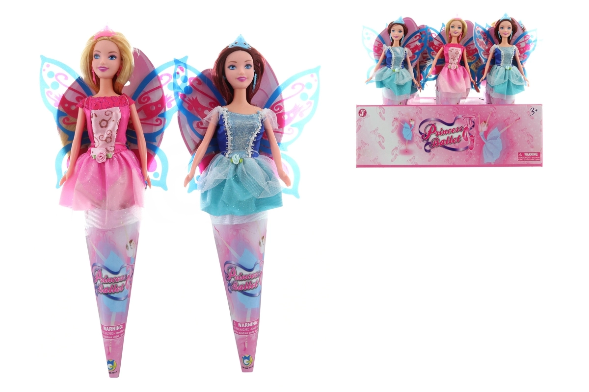 Elegante accessories som krone og øreringe giver dukken et eventyrligt touch. Dukken er lavet af holdbart plastmateriale, mens kræmmerhuset er af pap, så det egner sig perfekt som gaveindpakning.