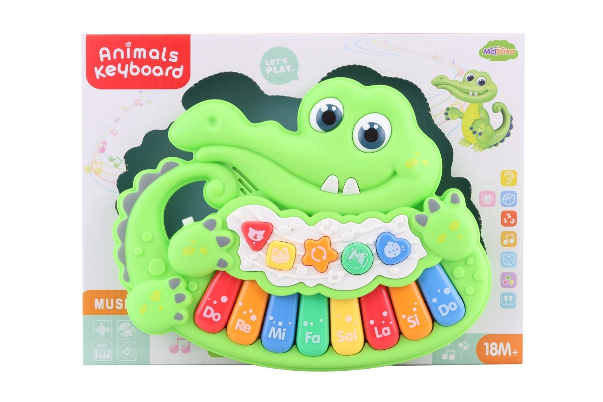 Oplev glæden ved musik med det søde krokodilleformede klaver. Takket være den enkle betjening og behagelige lyde er det et godt valg til de første musikalske skridt for børn fra 18 måneder. Legetøjet understøtter sanseudvikling, hånd–øje-koordination og kreativitet.