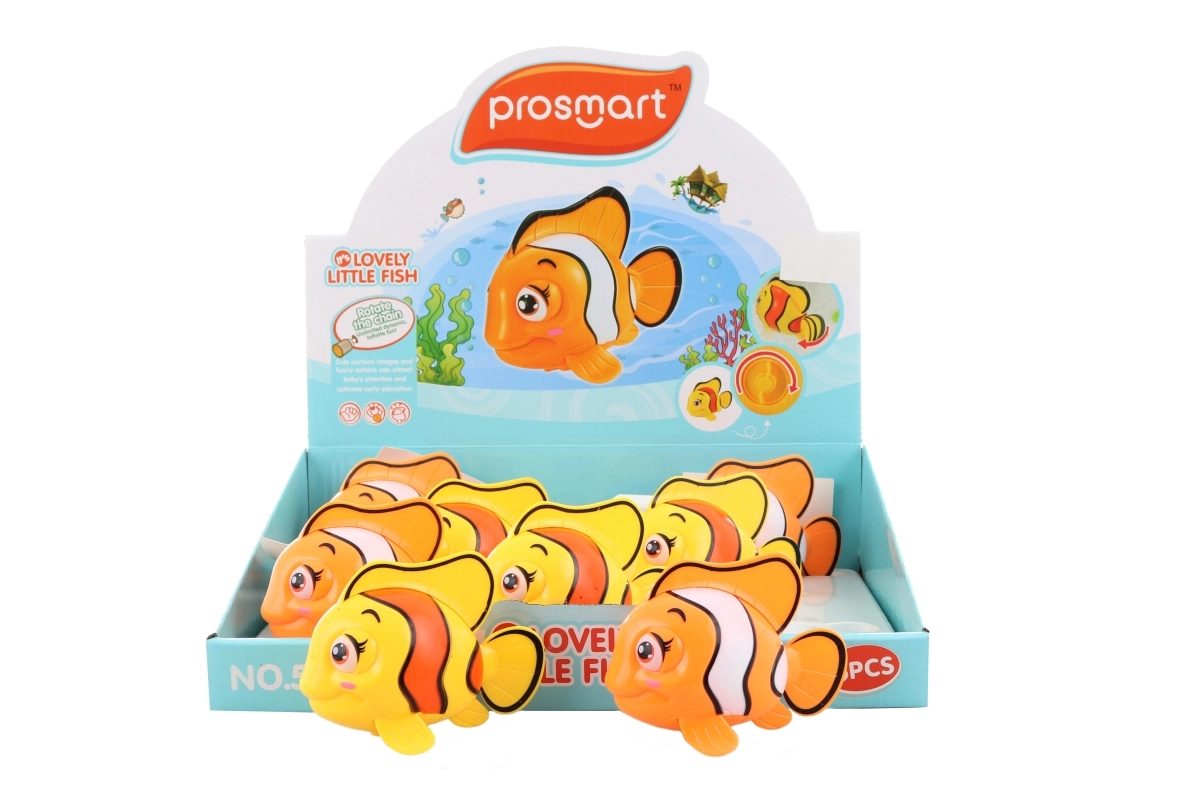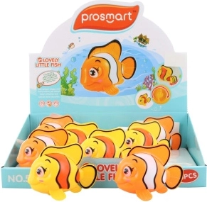 Denne søde optræksfisk på ca. 10 × 7 × 5,5 cm forvandler det daglige bad til et sjovt vandeventyr. En enkel optrækning aktiverer mekanismen, så fisken livligt bevæger sin bagfinne og svømmer på vandoverfladen. Legetøjet er lavet af holdbar plast og er designet til små børnehænder.
