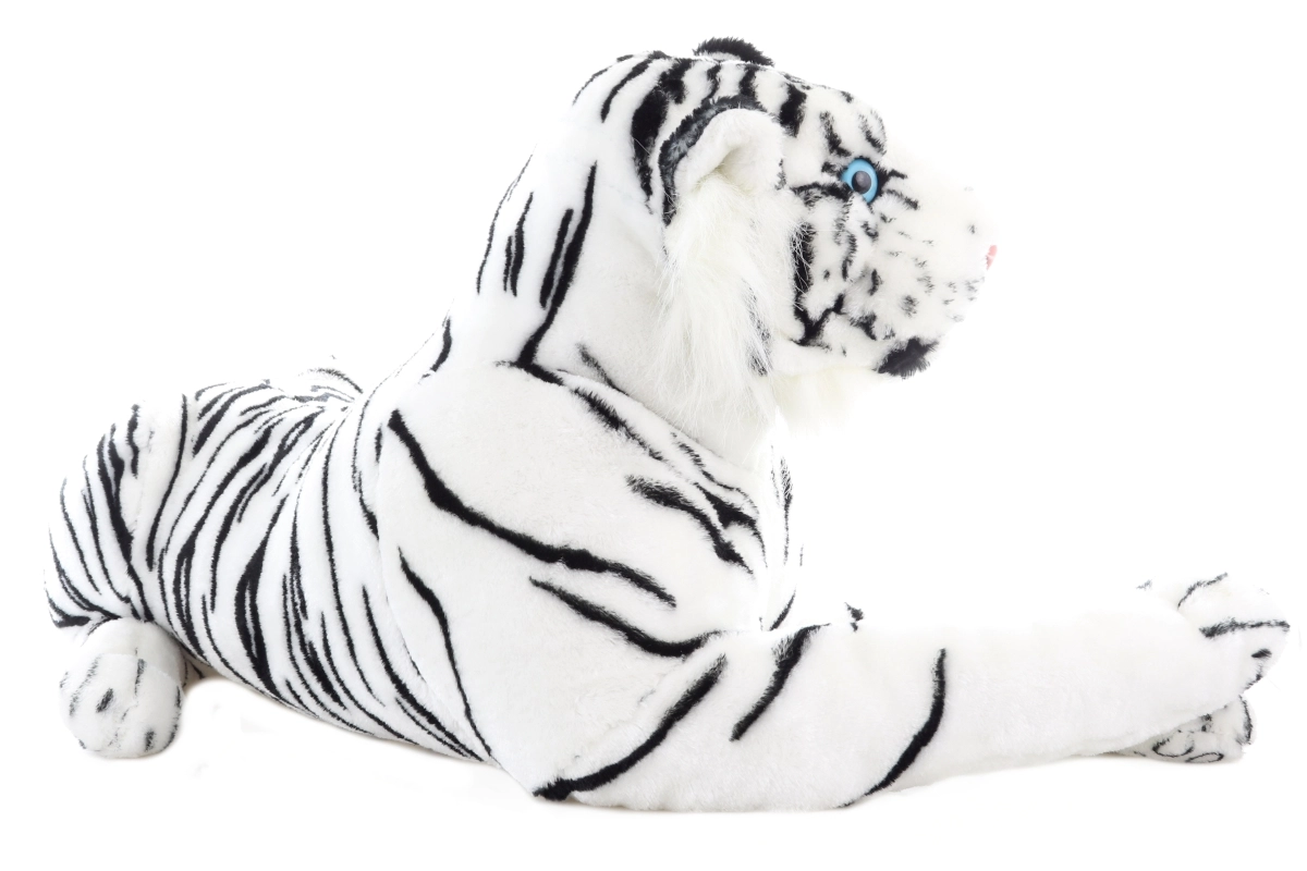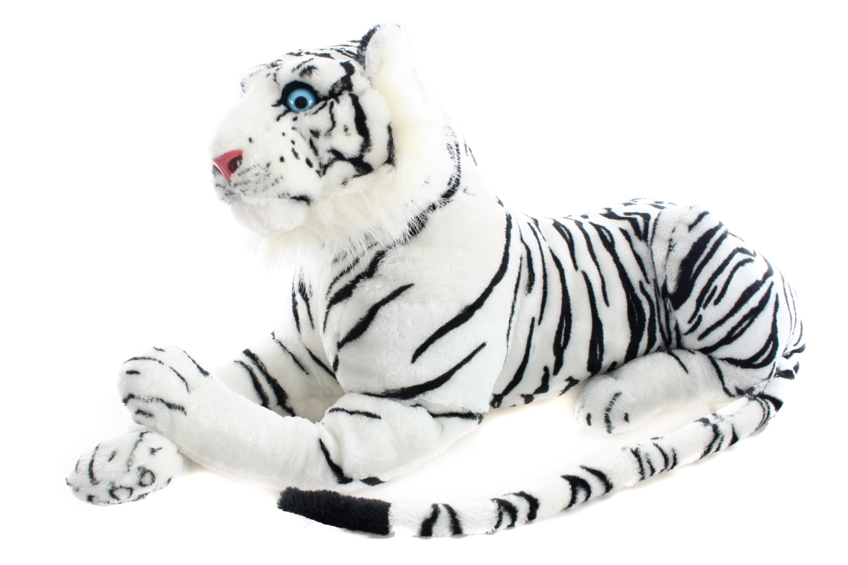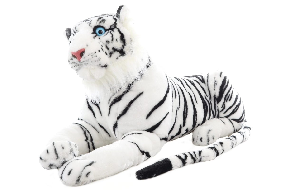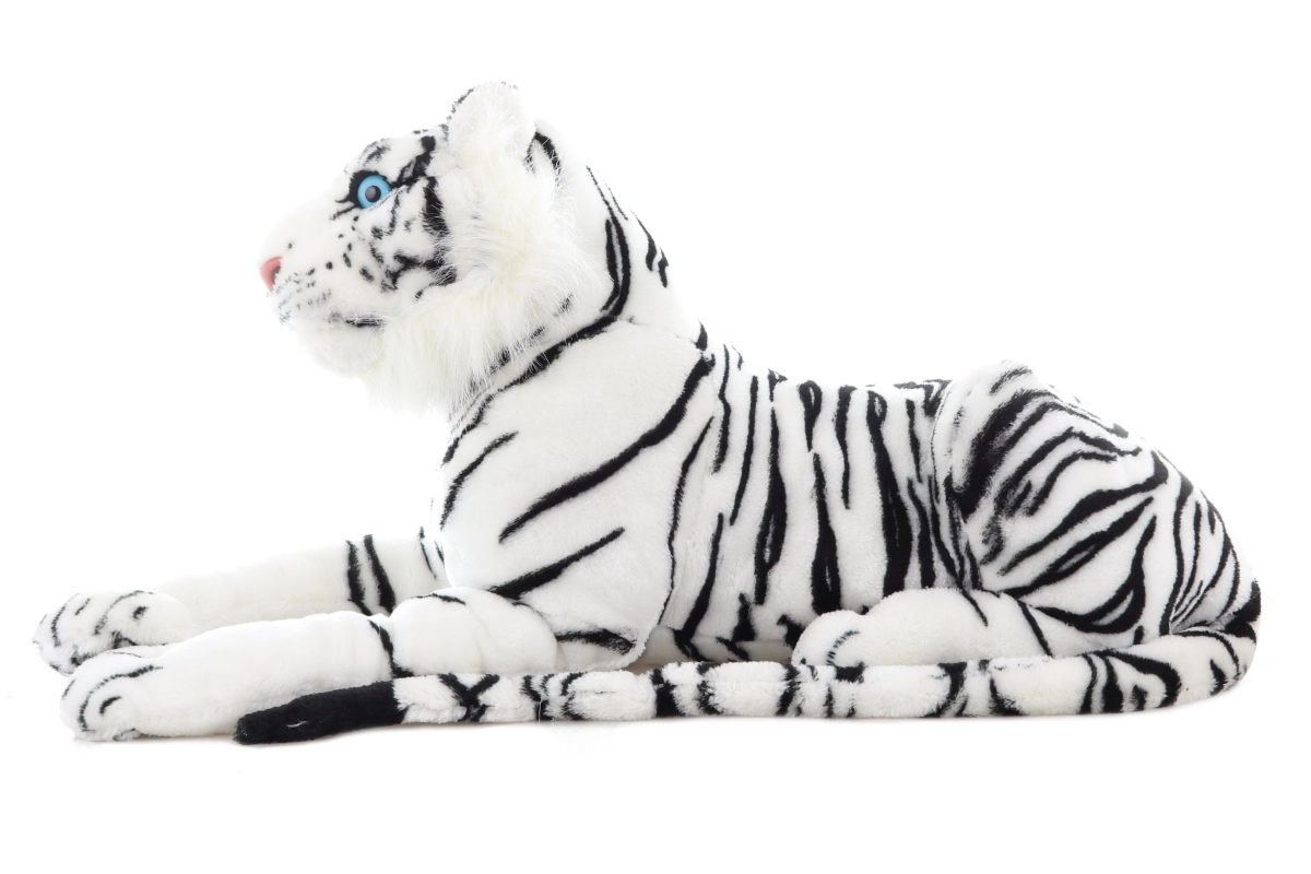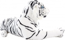 Denne bløde hvide tiger i liggende stilling imponerer med sit realistiske udseende og sin fine plys, der simpelthen indbyder til at blive krammet. Takket være den høje kvalitet og de omhyggelige detaljer – fra striberne til de markante øjne – er den en fantastisk ledsager på børneværelset og et stilfuldt interiørelement.