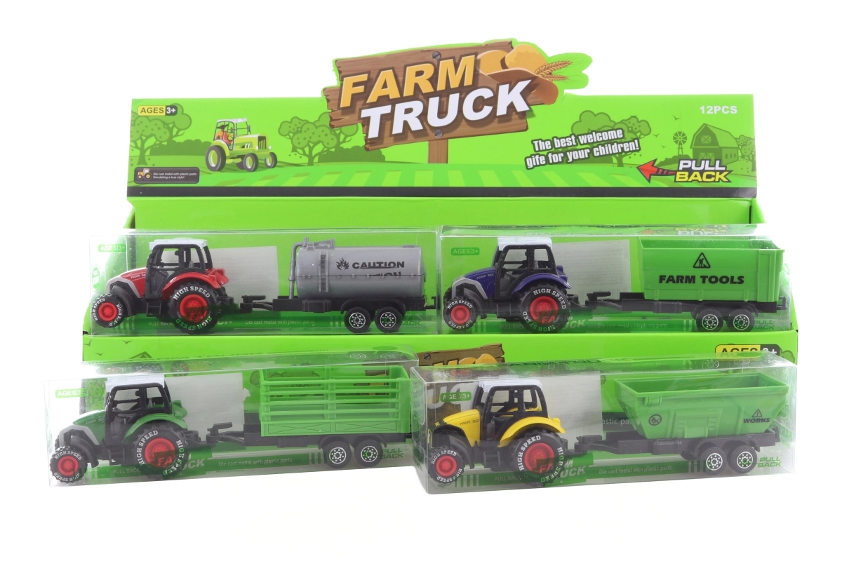Den realistiske metaltraktor med plasttipvogn er ideel til små fans af landbrugsmaskiner. Takket være pull-back (tilbagestræk) er det nok at trække den tilbage, hvorefter traktoren kører frem – masser af sjov både hjemme og på farten. Den kompakte størrelse og den robuste konstruktion sikrer lang levetid og behagelig leg.