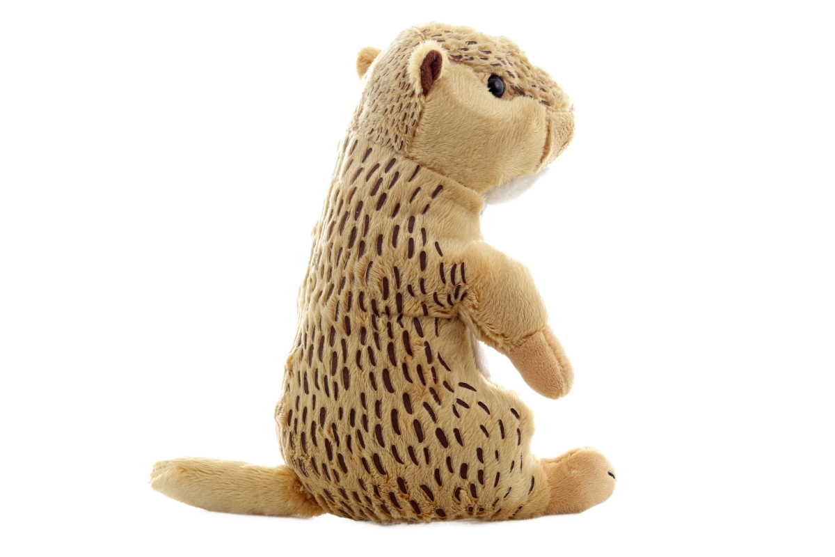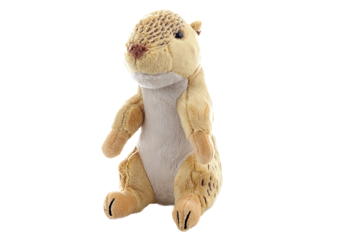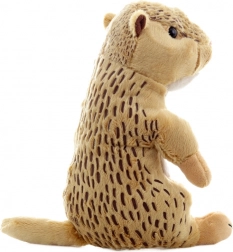 Denne europæiske plysjordegern glæder med sit realistiske look, bløde pels og naturlige farver med små pletter. Den har broderede øjne og snude uden små plastdele, så den er egnet selv til spædbørn. Den siddende form sikrer, at legetøjet holder faconen og er klar til både kram og leg.