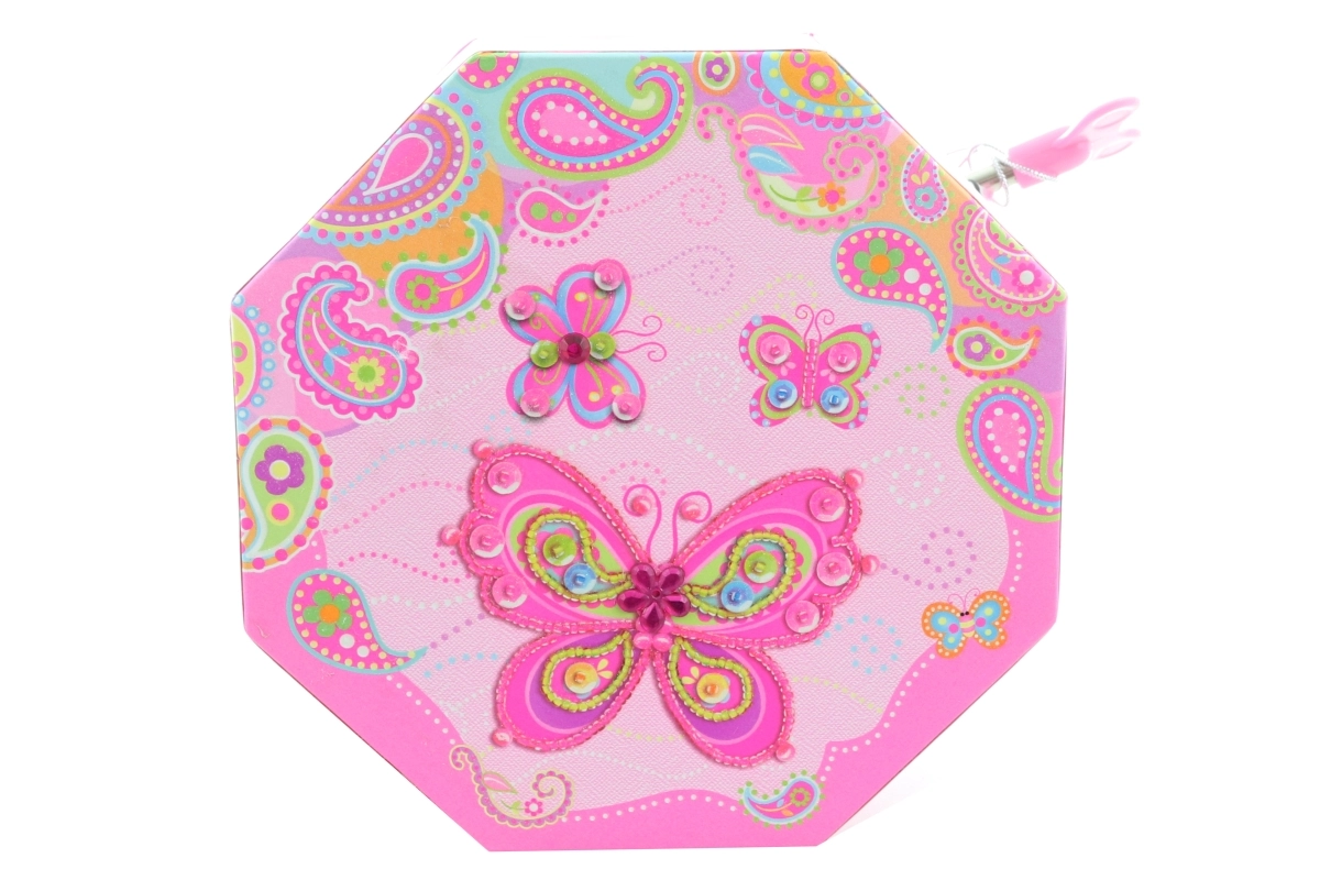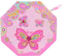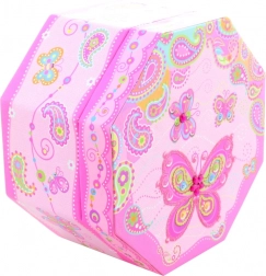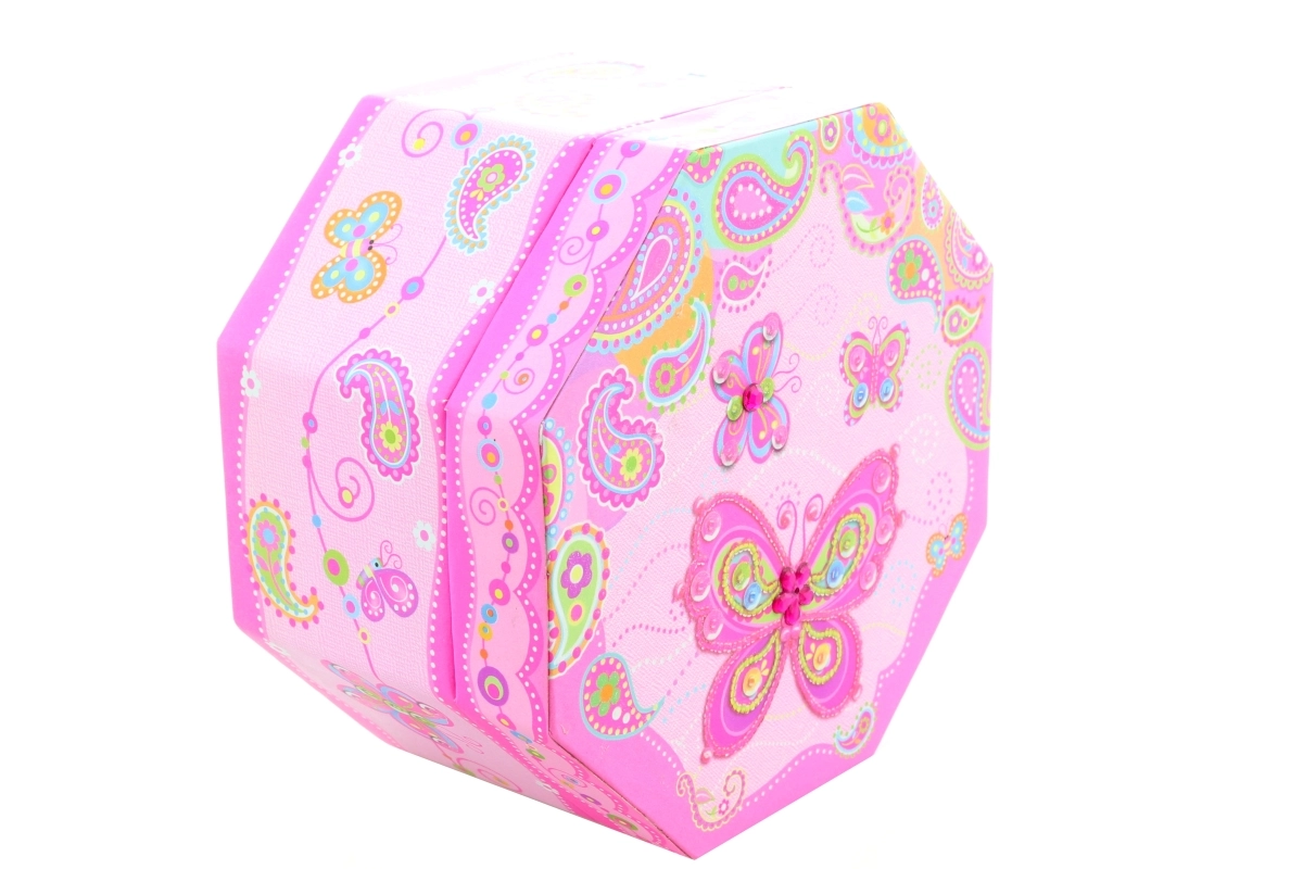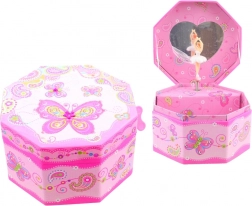Fortryllende musikalsk smykkeskrin med sommerfuglemotiv, der bringer charmen fra klassiske spilledåser. Når nøglen trækkes op, drejer ballerinaen indeni og danser til en behagelig melodi. Indeni finder du også et praktisk spejl, som gør det nemt at lægge og tjekke smykker.