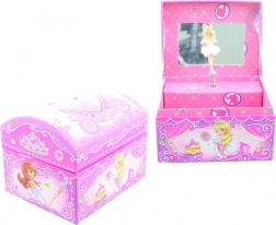 Dette yndige smykkeskrin med spilledåse vil begejstre ethvert barn, der elsker orden i sine skatte og magiske detaljer. Når låget åbnes, drejer ballerinaen foran spejlet, og melodien får smilet frem.