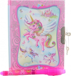 Dagbogen kan låses og leveres med to nøgler, så dit privatliv forbliver dit eget. De praktiske kompakte mål 11 × 14 × 2 cm sikrer nem transport og opbevaring. Det stilfulde design med enhjørning vil glæde enhver elsker af magi og fantasi.