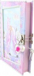 Denne charmerende notesbog med enhjørning vil glæde alle, der elsker magiske motiver. Takket være låsen forbliver personlige noter i sikkerhed, og de to medfølgende nøglekort sikrer, at muligheden for at låse op ikke går tabt.