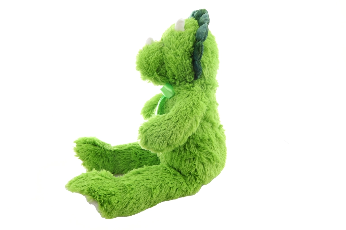 Designet med små horn, “rygplader” og en sløjfe virker venligt og muntert og passer derfor ind på ethvert børneværelse. Takket være den høje kvalitet er dinosauren velegnet til daglig kramning og langvarig brug.