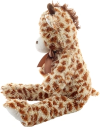 Denne store plys-giraf (ca. 55 × 25 × 15 cm) er skabt til endeløse kram. Den blide, fluffy pels i brun-cremefarvet mønster er skånsom mod børns hud, og de broderede ansigtsdetaljer giver sikkerhed selv for de mindste. Takket være den lette og bløde fyldning er den nem at holde og kramme.