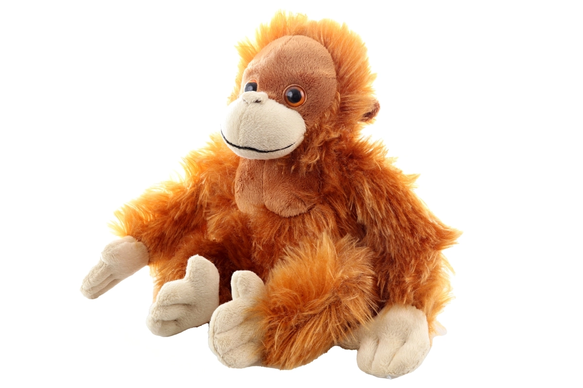 Den bløde pels og behagelige fyld gør orangutangen til en ideel ven i sengen og på farten.