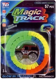 Nyd hæsblæsende løb med den lysende, fleksible racerbane, som du nemt samler efter din egen fantasi. Delene klikker let sammen, og banen kan altid formes om – lige strækninger, sving og loops klares uden problemer takket være de bøjelige segmenter.