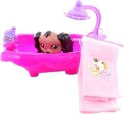 Et sjovt badeværelsessæt til de mindste, der gør badetiden legende og hyggelig med et sødt dyr. Pakken indeholder et dyr, et badekar med bruser, et håndklæde og 2 tilbehørsdele. Ideelt til at udvikle fantasien og gøre badet sjovere.