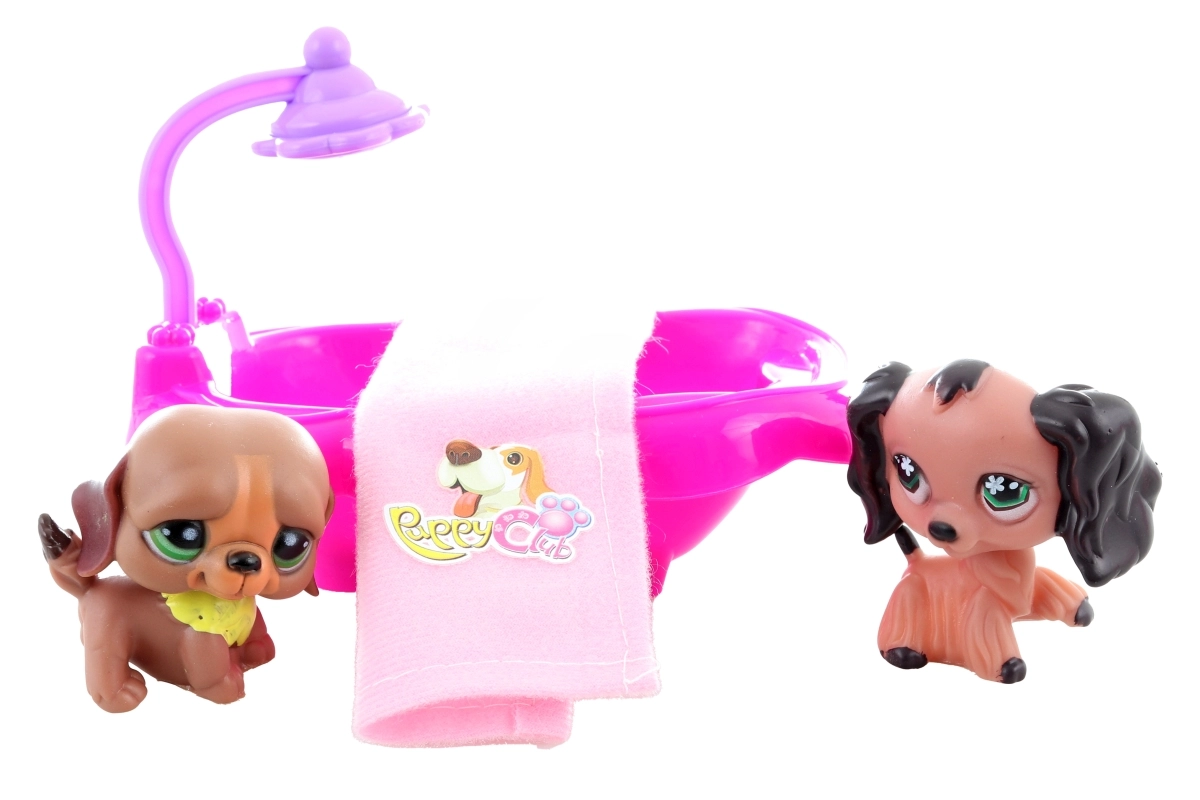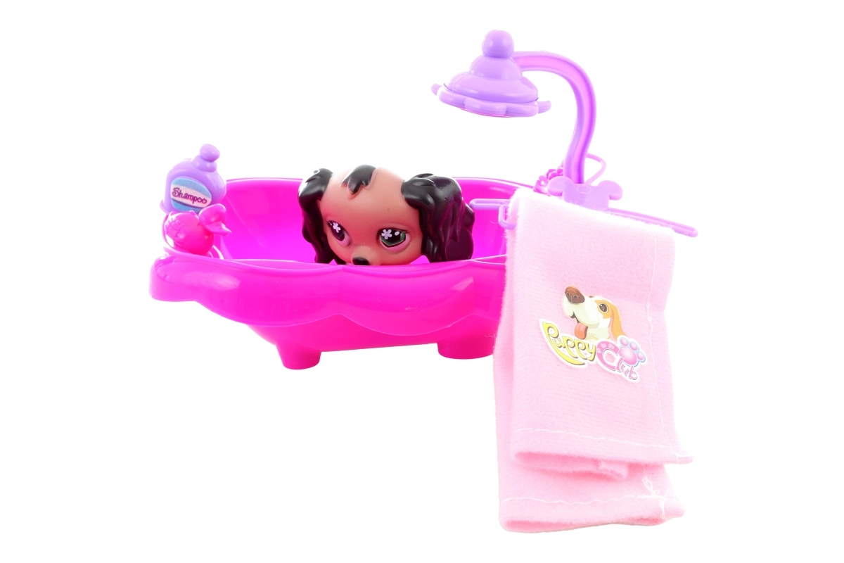 - 1 dyr, badekar med bruser, håndklæde, 2 mindre tilbehørsdele