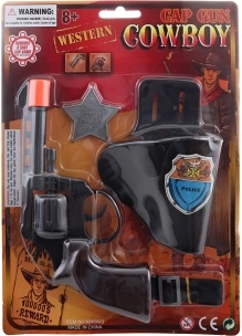 Dette sæt indeholder en plast-kapselpistol, et praktisk bæltehylster og et badge, som gør enhver leg som politibetjent eller cowboy endnu mere realistisk. Enkel betjening og let konstruktion giver behagelig brug selv for mindre børn.