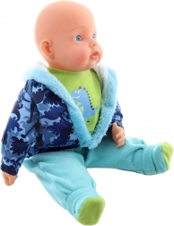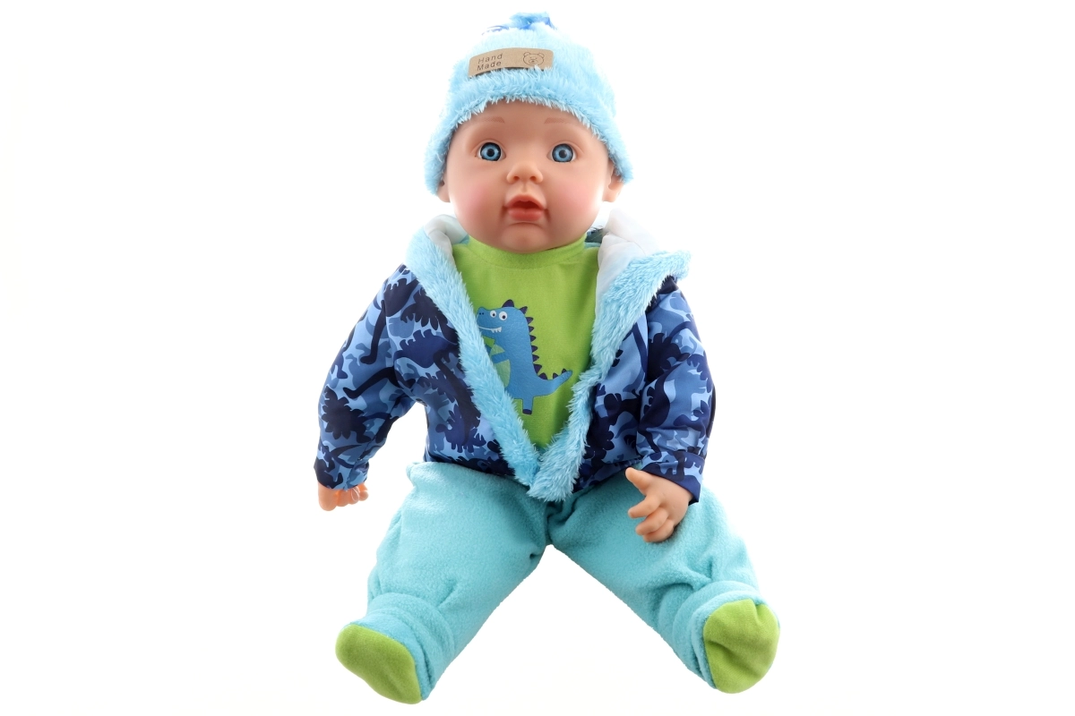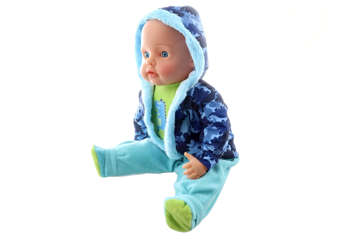 Denne store babydukke dreng er en skøn ledsager til hverdagslegen. Takket være den bløde krop er den behagelig at holde om og kramme, mens det realistiske hoved og de plastiske ekstremitetsender giver et autentisk udseende. Det stilfulde sæt tøj med dinosaurmotiv kan nemt tages af og på igen – ideelt til træning af finmotorik og fantasifuld leg.
