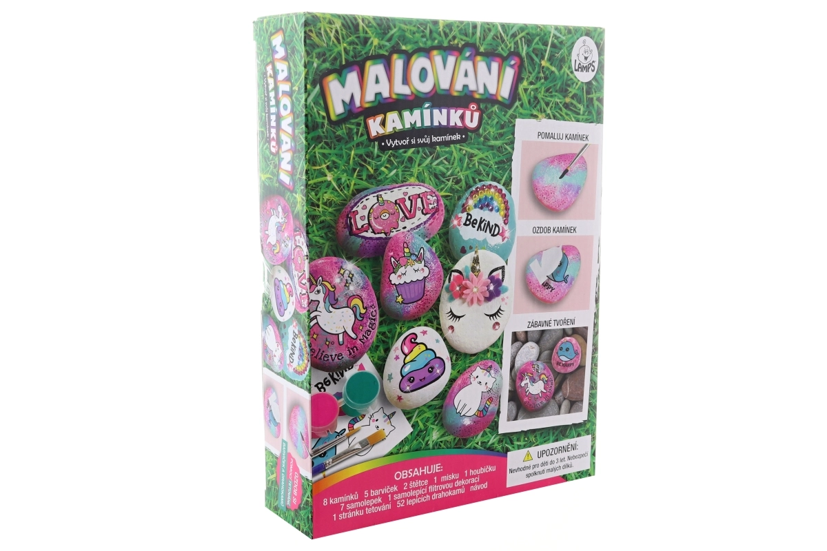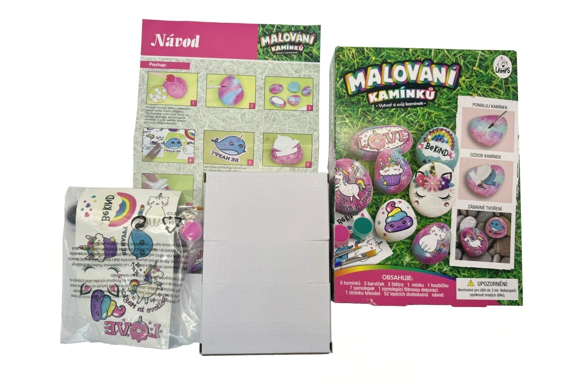 Dette magiske malesæt til sten med enhjørningetema stimulerer børns fantasi og kreativitet. Børn kan dekorere glatte sten med farver, tilføje glimmer og sætte juveler på for et virkelig eventyrligt udtryk. Alt er overskueligt pakket i en æske, så det er perfekt som gave.