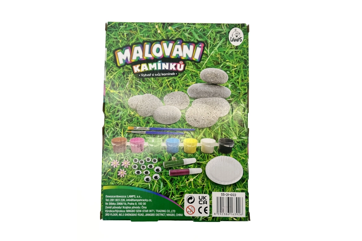 Skab søde dyremotiver på glatte sten og forvandl enhver eftermiddag til et farverigt eventyr. Det kompakte sæt med sikre farver og tilbehør er klar til brug med det samme – det er bare at åbne æsken og begynde at male.