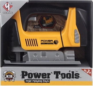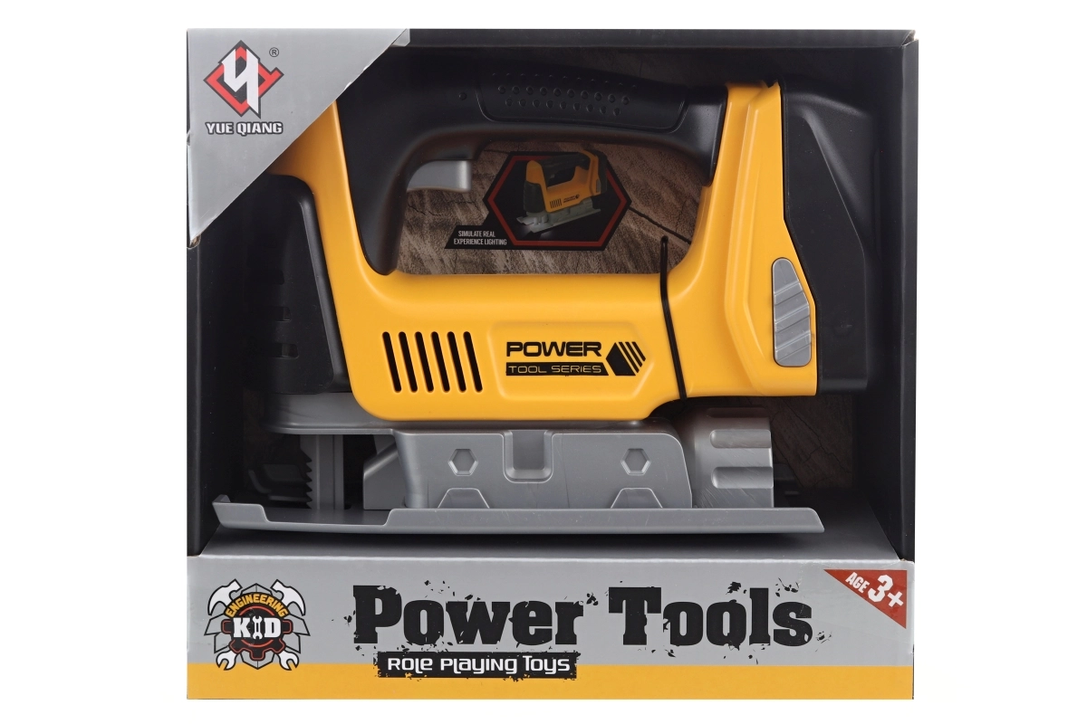 En realistisk stiksav til børn glæder små gør‑det‑selv‑folk fra 3 år. Når der indsættes 3× AAA-batterier, lyser legetøjet, afgiver lyde, og den forreste klinge bevæger sig. Sikker udførelse i plast, ideel til at udvikle fantasi og motorik.