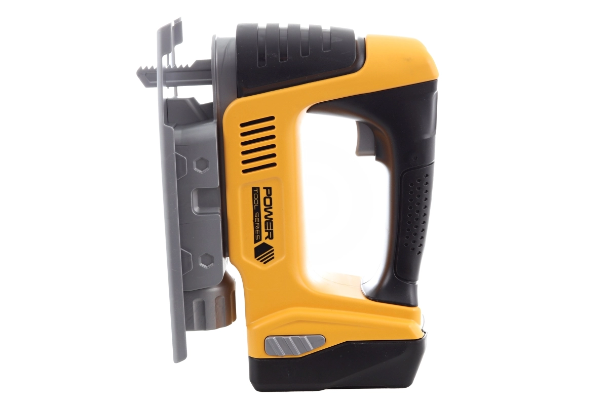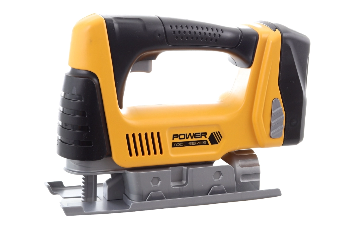 Denne børne-stiksav er en vellykket miniudgave af rigtigt værktøj. Takket være lys- og lydeffekter samt den bevægelige klinge virker den meget realistisk og er samtidig sikker til børns leg. Et fantastisk supplement til værkstedet i børneværelset og rolleleg som små håndværkere.