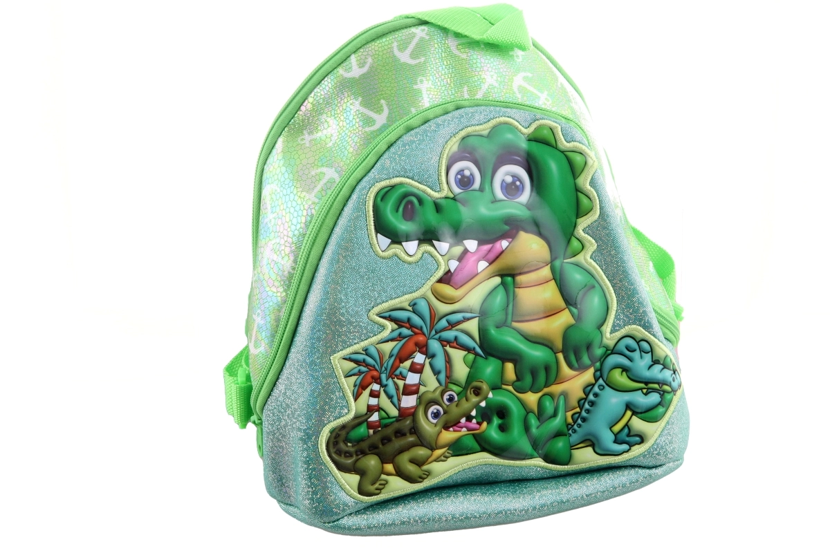 Det markante 3D-motiv med krokodille/dino giver rygsækken et sjovt look, og børn vil bære den med glæde i børnehave og på udflugter.