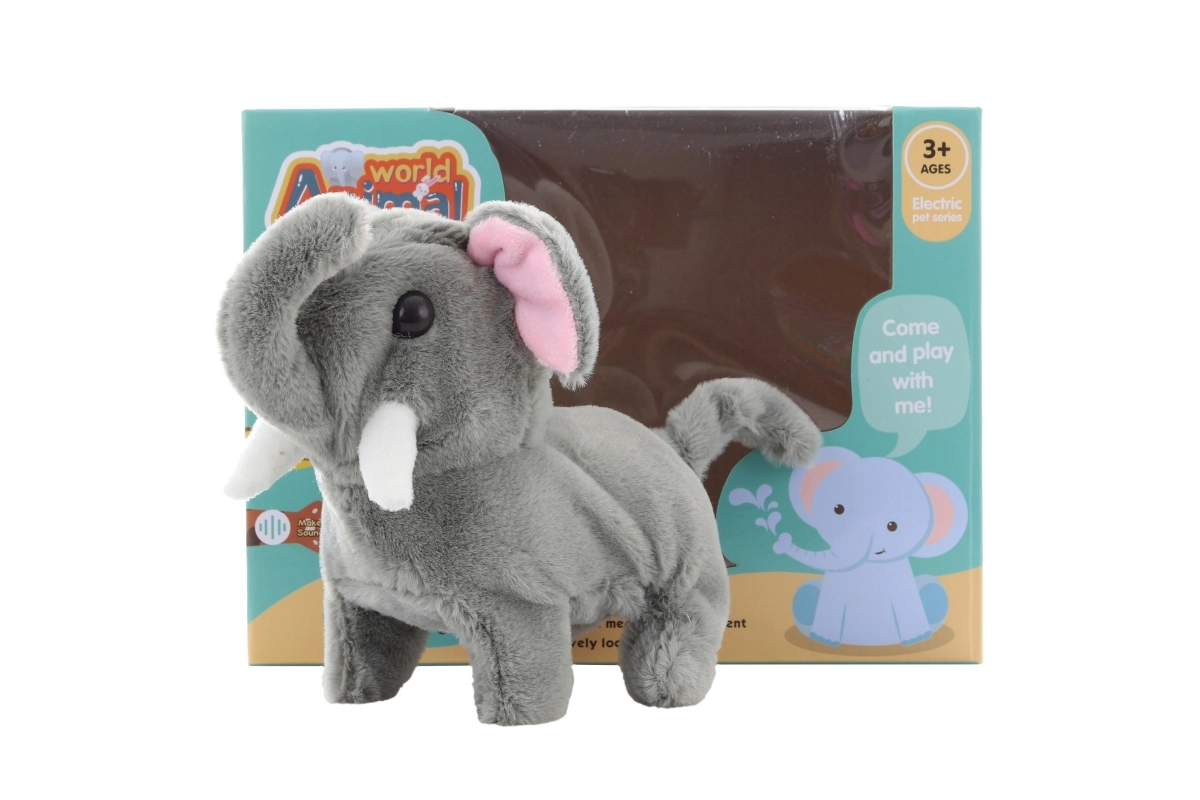 Denne gående plyselefant bevæger sig nuttet og afgiver lyde, når den tændes, hvilket får børnene til at smile. Kombinationen af en plastkonstruktion og en blød plys-overflade sikrer både holdbarhed og en behagelig følelse under leg.