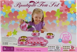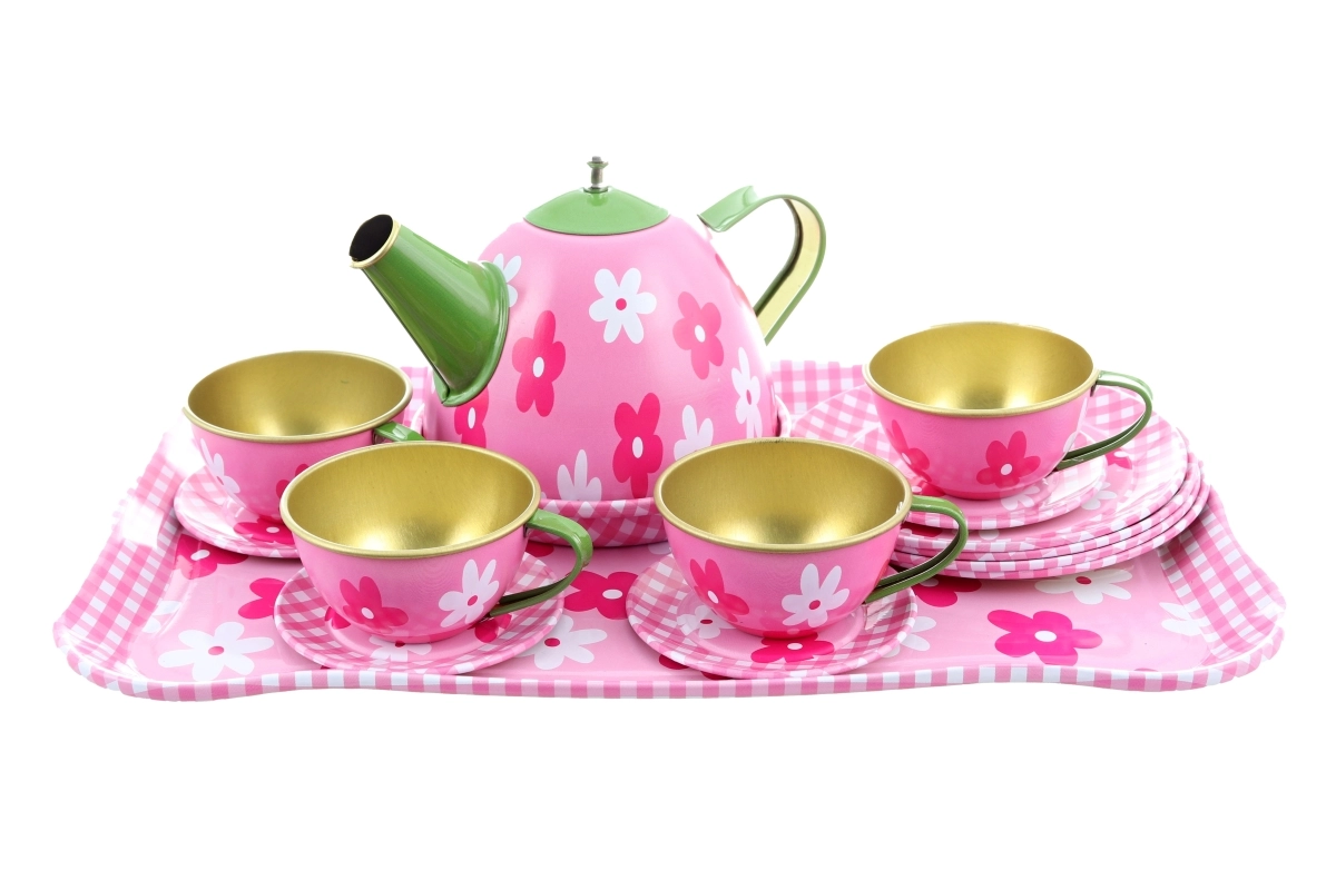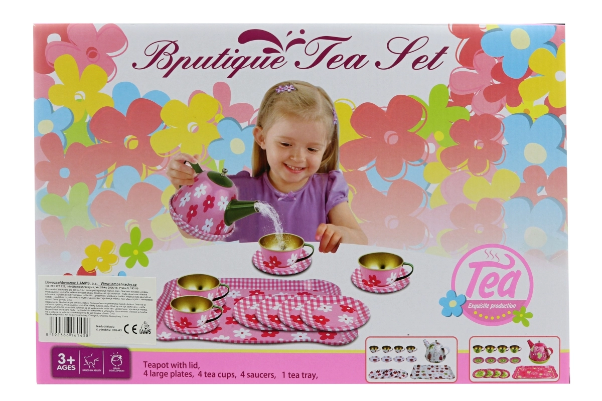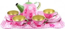 Arrangér et magisk teselskab! Dette tin-tekandesæt med små blomster giver børn en autentisk oplevelse af at servere te, og det understøtter rolleleg, udvikling af finmotorik og sociale færdigheder. Takket være den solide tin er sættet holdbart og samtidig let for små hænder at håndtere.