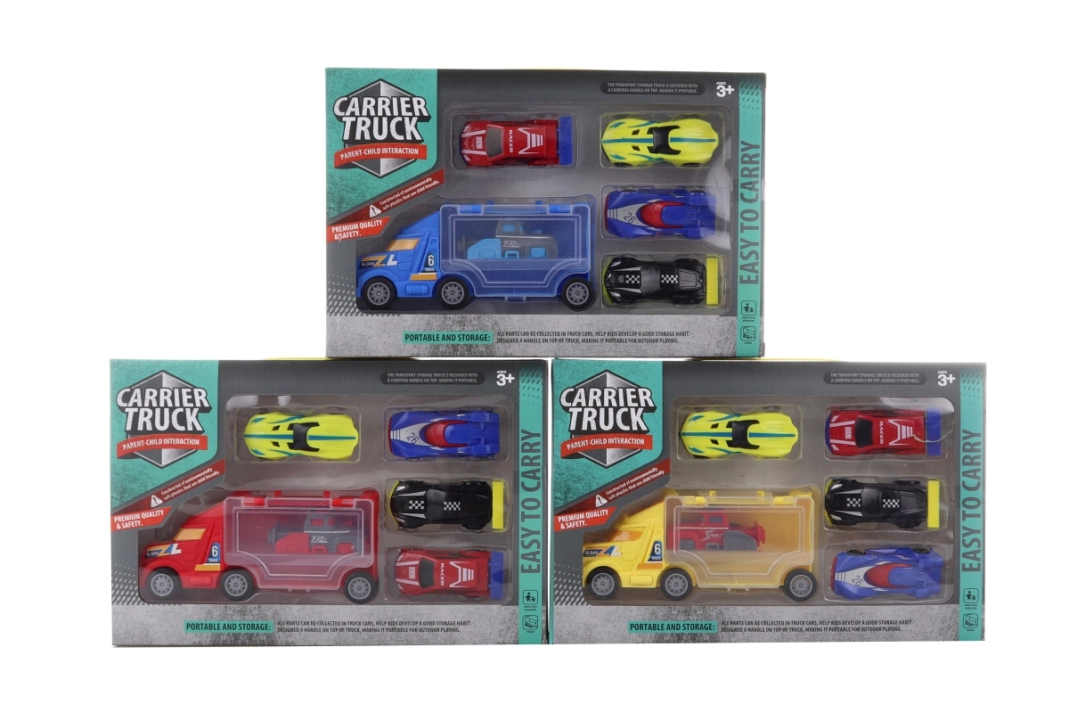 Dette farverige sæt indeholder en lastbil og mindre biler, som stimulerer fantasien og udvikler finmotorikken. Takket være det holdbare plast er legetøjet velegnet til daglig leg både hjemme og på farten.