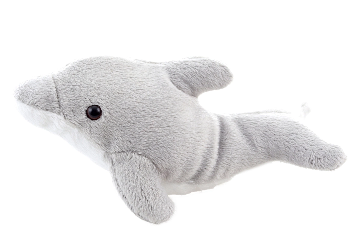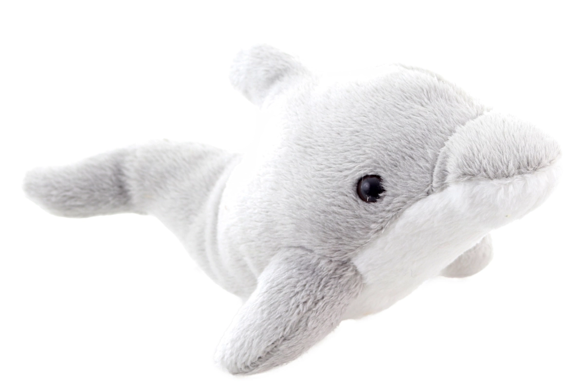 Denne lille plys-delfin glæder med sin bløde, silkebløde pels og søde udtryk. Takket være den kompakte størrelse på 16 cm passer den i en barnehånd, barnevogn og seng og bliver en trofast ledsager til både leg og indsovning.