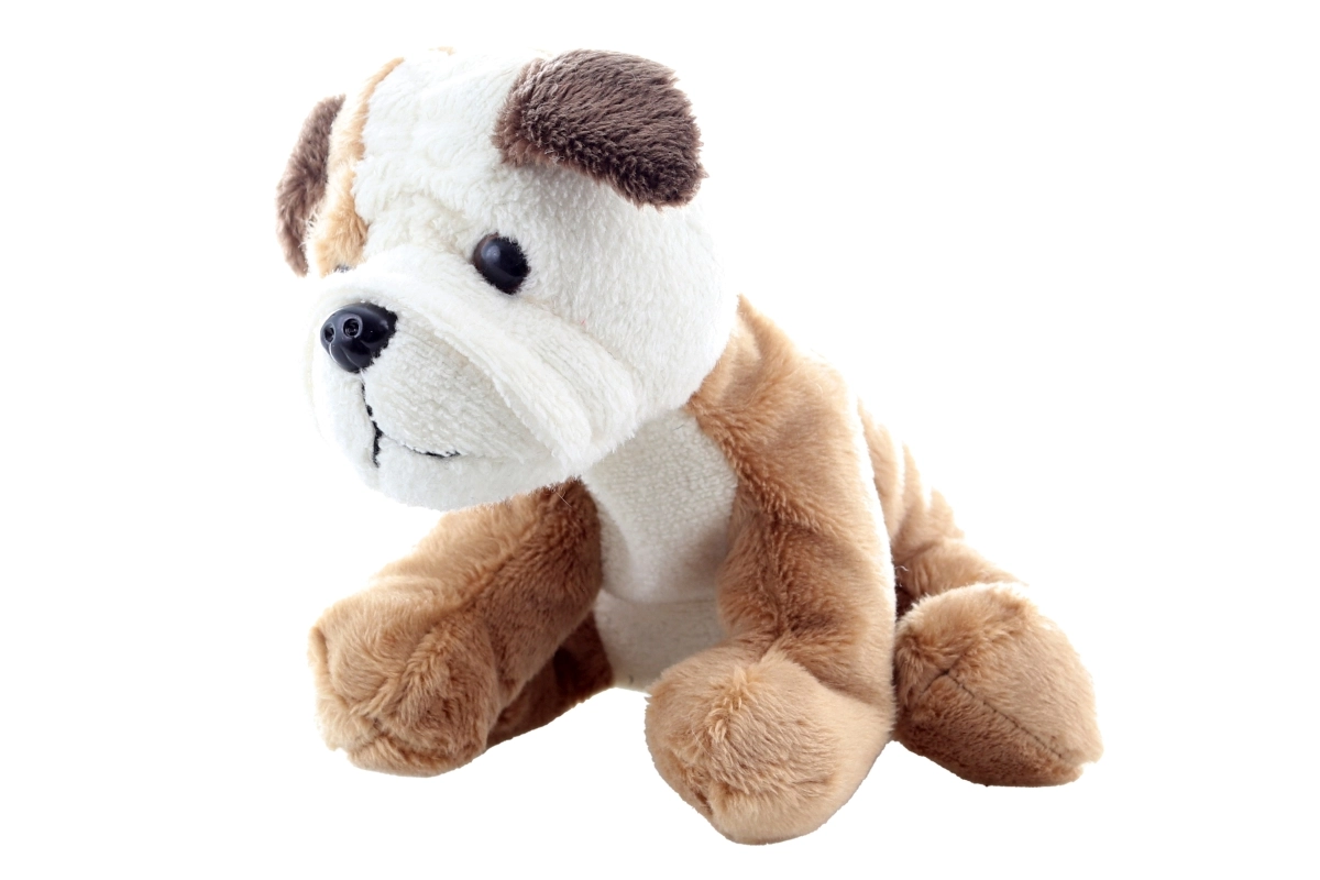 Denne lille plysbuldog imponerer ved første berøring – den er ekstra blød, behagelig at holde og sikker selv for de mindste børn. Takket være kvalitetsarbejde med broderede detaljer virker den venlig og charmerende.