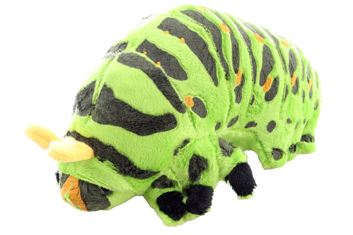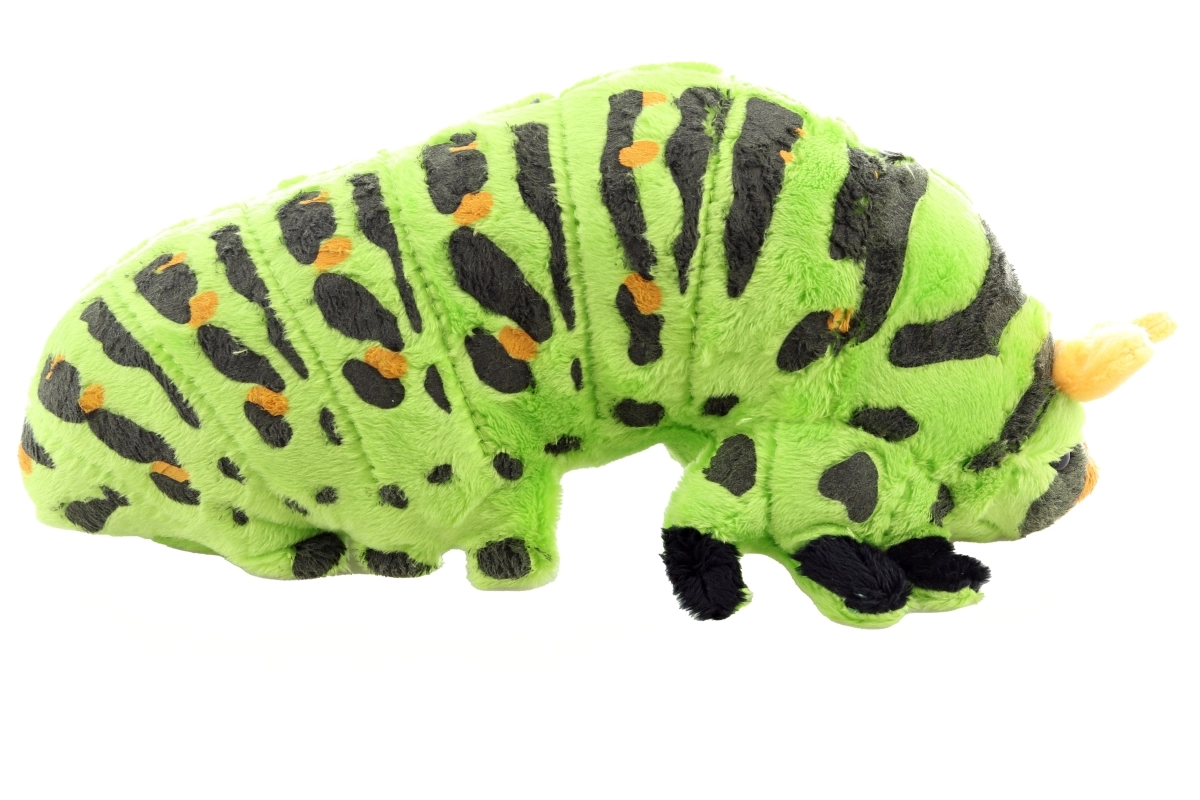 Denne bløde plyslarve er skabt til kram, leg og som fin pynt på børneværelset. Takket være de kompakte mål 25 × 11 × 11 cm ligger den godt i små hænder og er en skøn ledsager på farten, i barnevognen og i sengen.