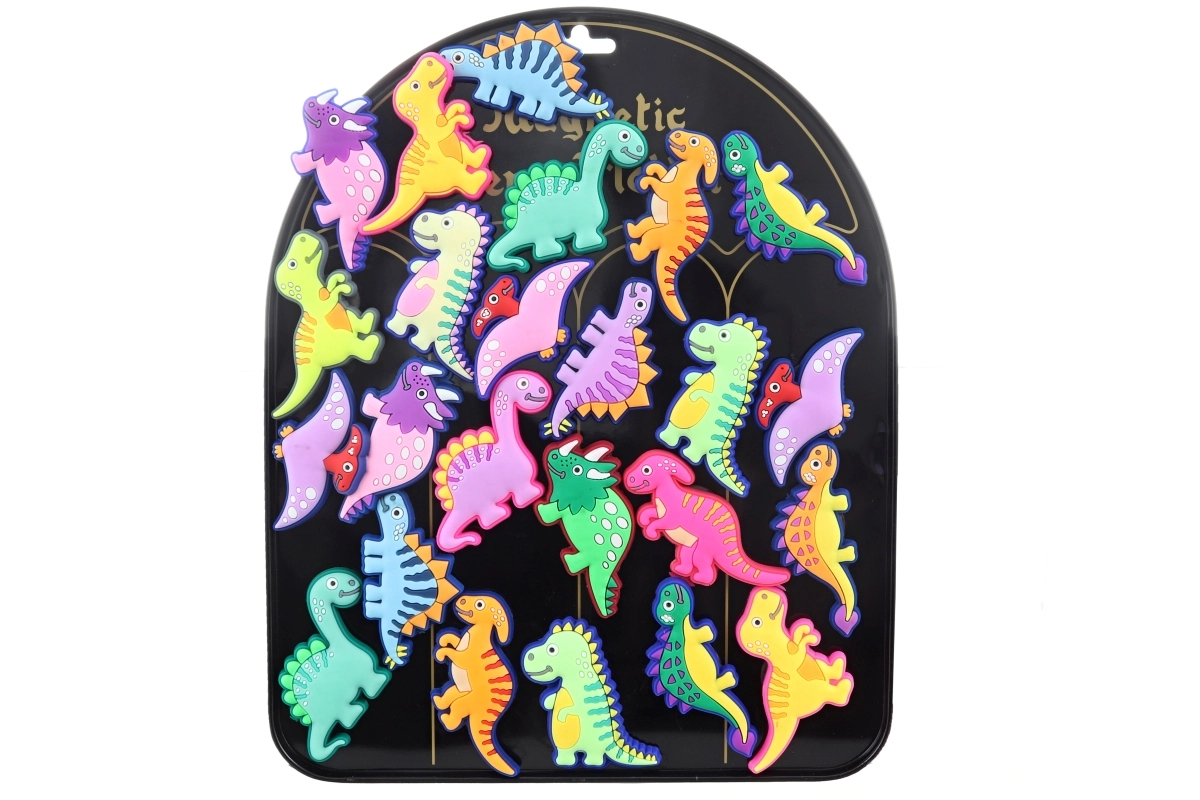 Pynt køleskabet, magnettavlen eller kontoret med farverige dinosaurmagneter.