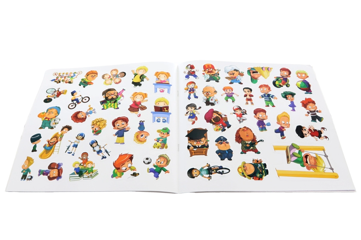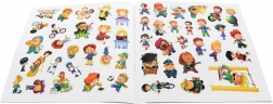 To ark farverige klistermærker med glade motiver stimulerer fantasien og gør det muligt at færdiggøre billederne eller pynte hæfter og dagbøger.