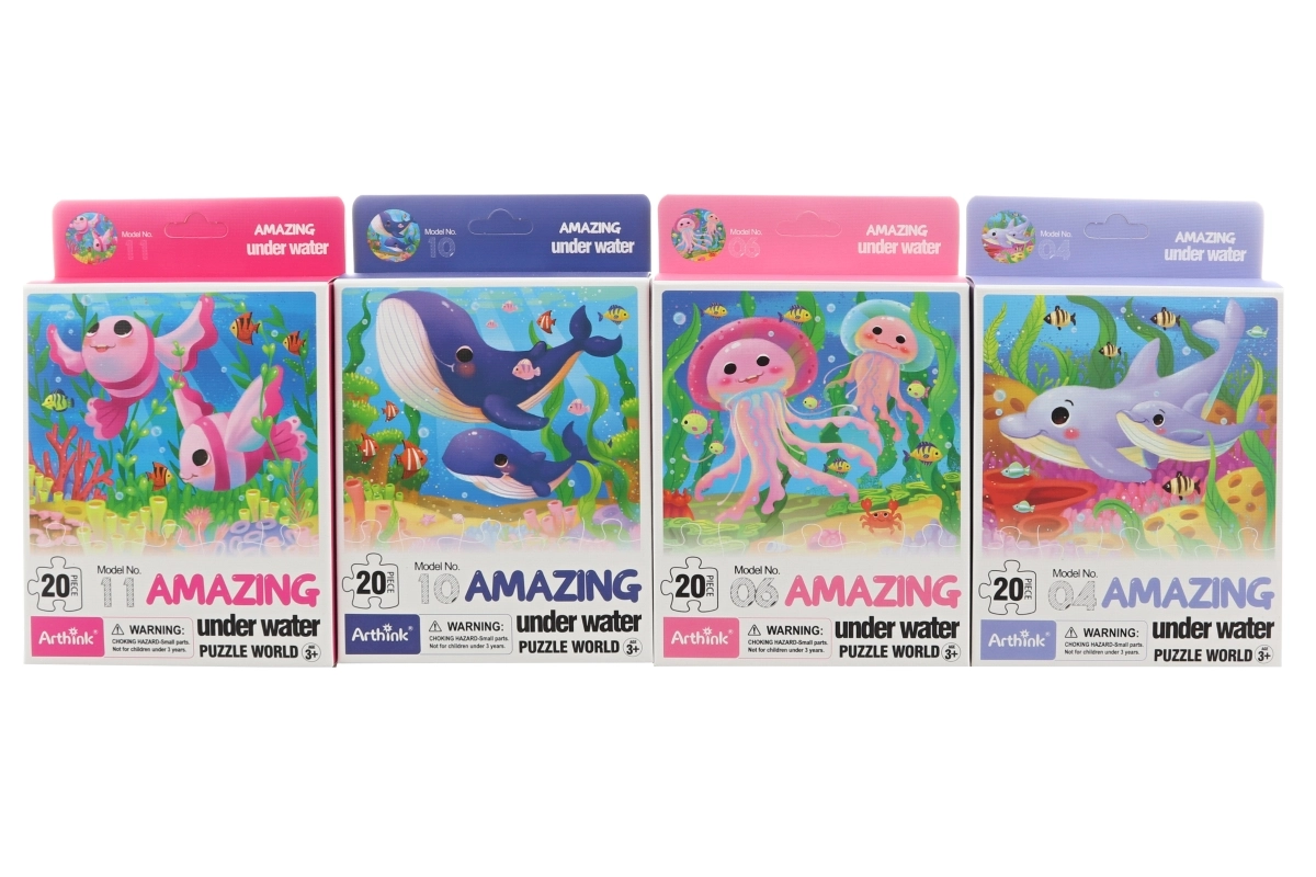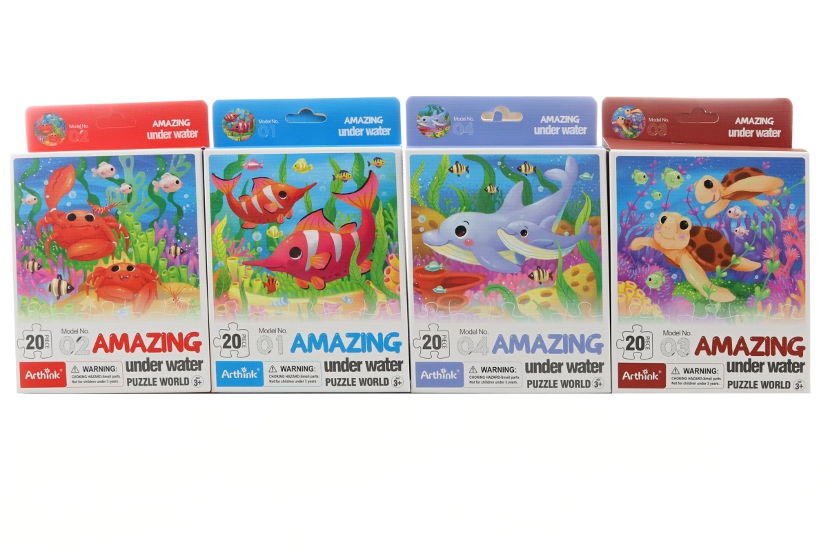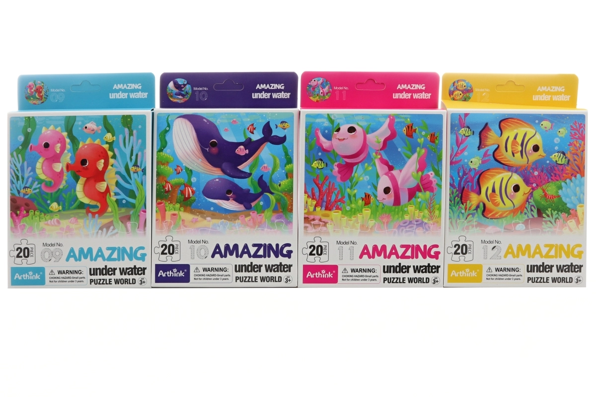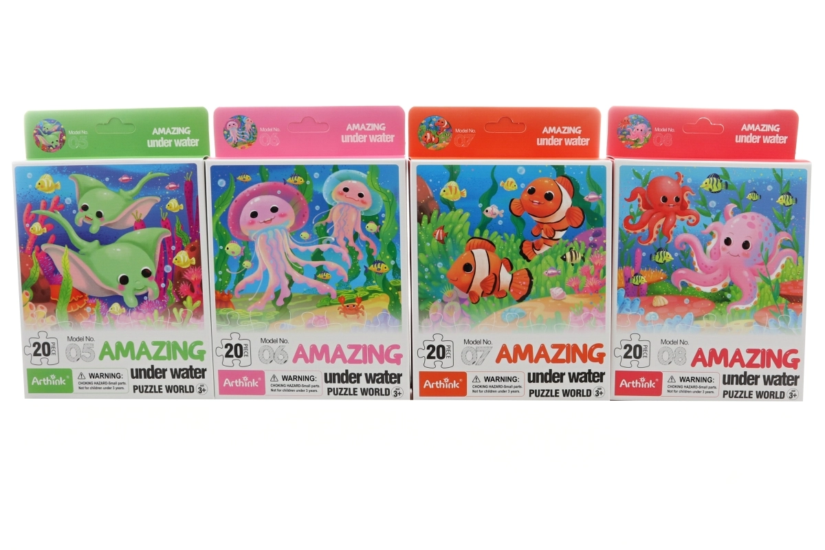 Når puslespillet er samlet, har det kompakte mål på 21 × 19 cm, så det er nemt at opbevare og tage med. Af de 12 tilgængelige motiver sender vi en variant efter aktuel lagerstatus, og hver viser attraktive scener fra livet under havets overflade.