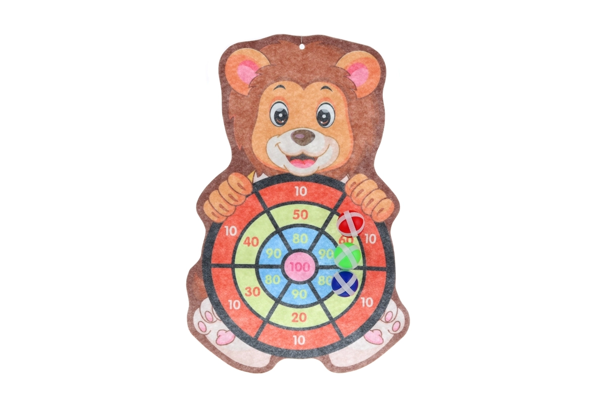 Nyd masser af sjov med en børne-målskive med løvemotiv, der fungerer med velcro. Børnene træner hånd–øje-koordination, præcision og tålmodighed – helt sikkert takket være de bløde bolde.