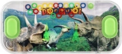 Dette populære lommeformat vandspil med dinosaurer er den perfekte ledsager i bilen, på ferien og til hyggestunden derhjemme. Med et tryk på de to sideknapper sætter du ringene i bevægelse i vandet og forsøger at få dem på pindene. Den enkle idé og det attraktive motiv sikrer skærmfri underholdning.