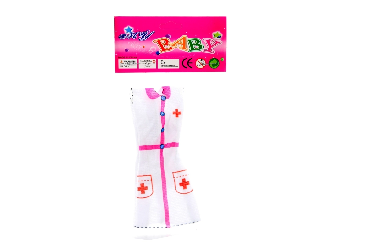Giv børn sjov og læring med en sød dukkekjole i sygeplejerskedesign. Outfittet er lavet af holdbar polyester, som er nem at vedligeholde og behagelig at røre ved. Takket være de kompakte mål er kjolen let at tage på og passer til almindelige mindre dukker.