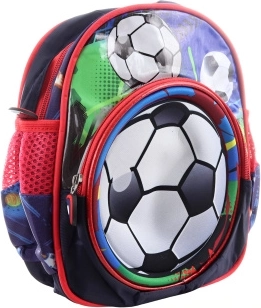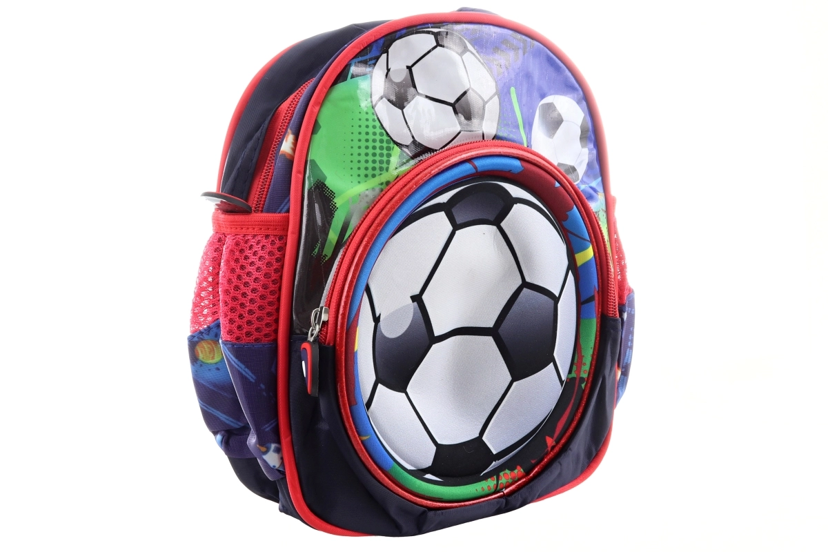 En stilfuld børne rygsæk med fodboldmotiv er et godt valg for små sportsentusiaster. Den formede forside giver rygsækken et attraktivt look, mens det lette stofmateriale sikrer komfort i daglig brug. Takket være de kompakte mål passer den til madpakke, drikkedunk, penalhus eller små legetøj.