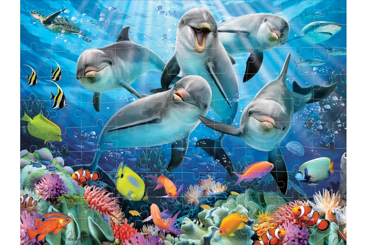 Oplev en aktivitet, der styrker tålmodighed, koncentration og finmotorik. Dette 3D-puslespil med delfinmotiv bringer en farverig undervandsscene til live, som med den lentikulære 3D-effekt virker plastisk og dynamisk. Det færdige billede har et kompakt mål på 31 × 23 cm og er perfekt til udstilling på børneværelset.