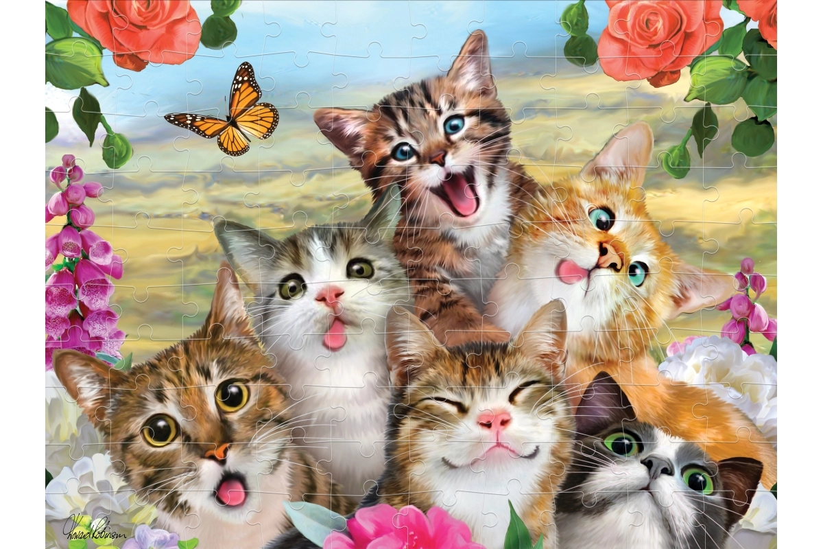 Når puslespillet er samlet, får du et stabilt billede på 31 × 23 cm, som kan udstilles på børneværelset. Den kompakte emballage (23 × 15 × 5 cm) er også velegnet til rejser og som gave til katteelskere.