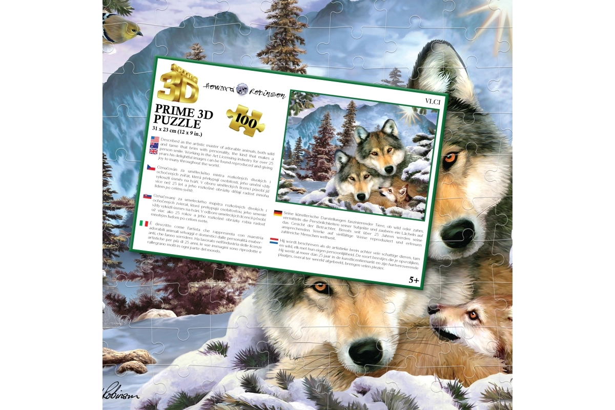 Dette kvalitets 3D-puslespil med ulve i en snedækket skov tilbyder en unik lentikulær 3D-effekt, som får billedet til at virke rumligt og levende. Samlingen udvikler tålmodighed, koncentration og finmotorik hos børn og giver samtidig skøn afslapning for voksne.