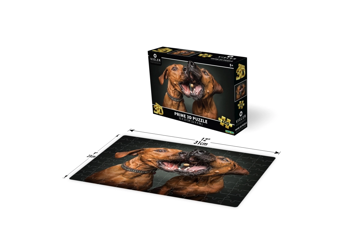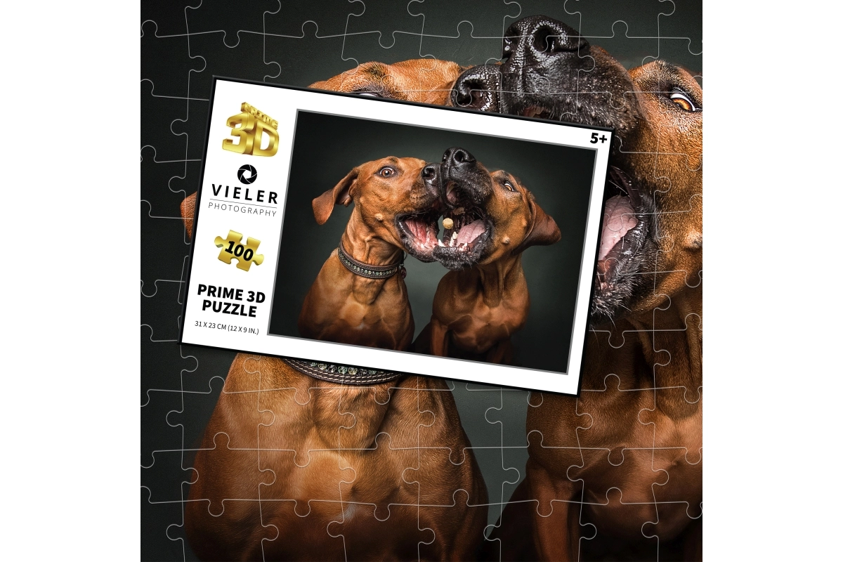 Dette 3D-puslespil med sf8de hunde vil glæde alle sme5 dyreelskere. Med 100 solide brikker kan bf8rn tre6ne logisk te6nkning, te5lmodighed og finmotorik. Ne5r puslespillet er samlet, opne5s et flot billede, der egner sig til udstilling eller gentagen samling.
