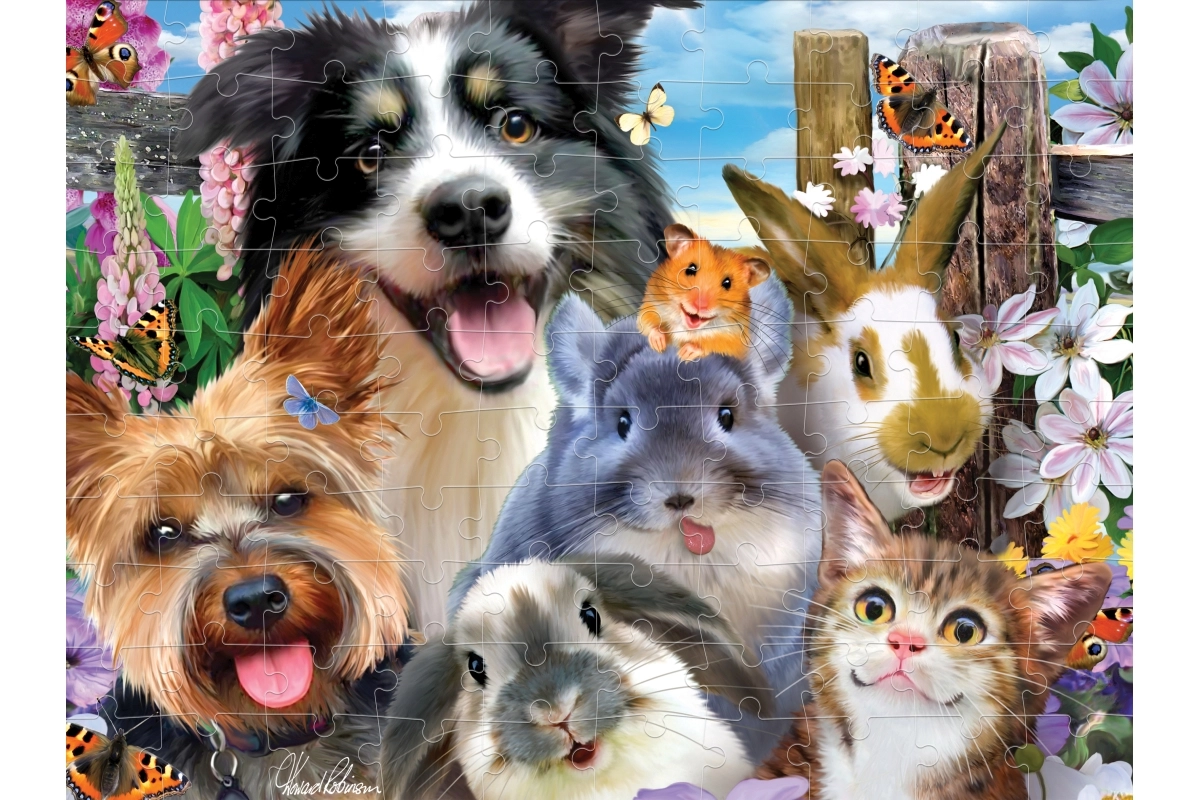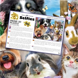 Dette farverige 3D-puslespil med smilende husdyr er et godt valg som den første større puslespilsudfordring. Med 100 brikker giver det den perfekte kombination af leg og læring – børn træner øje–hånd-koordination og koncentration, mens de nyder den glade illustration af de populære dyr.