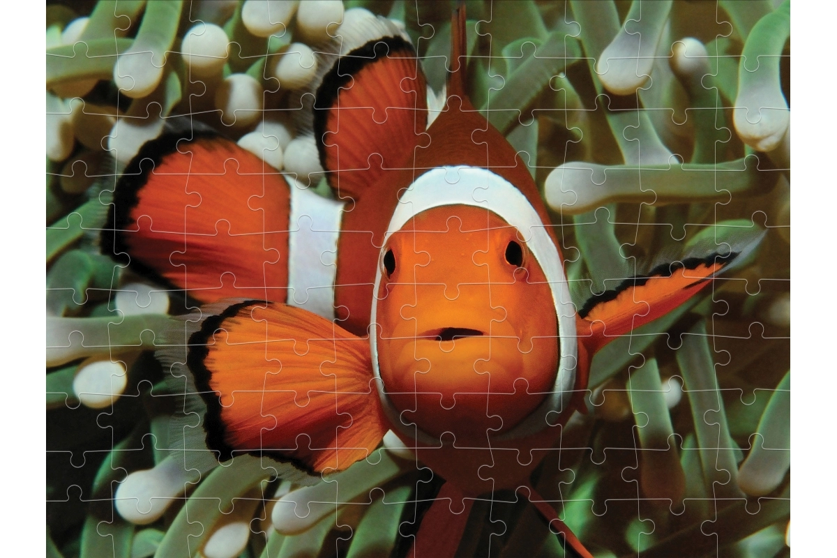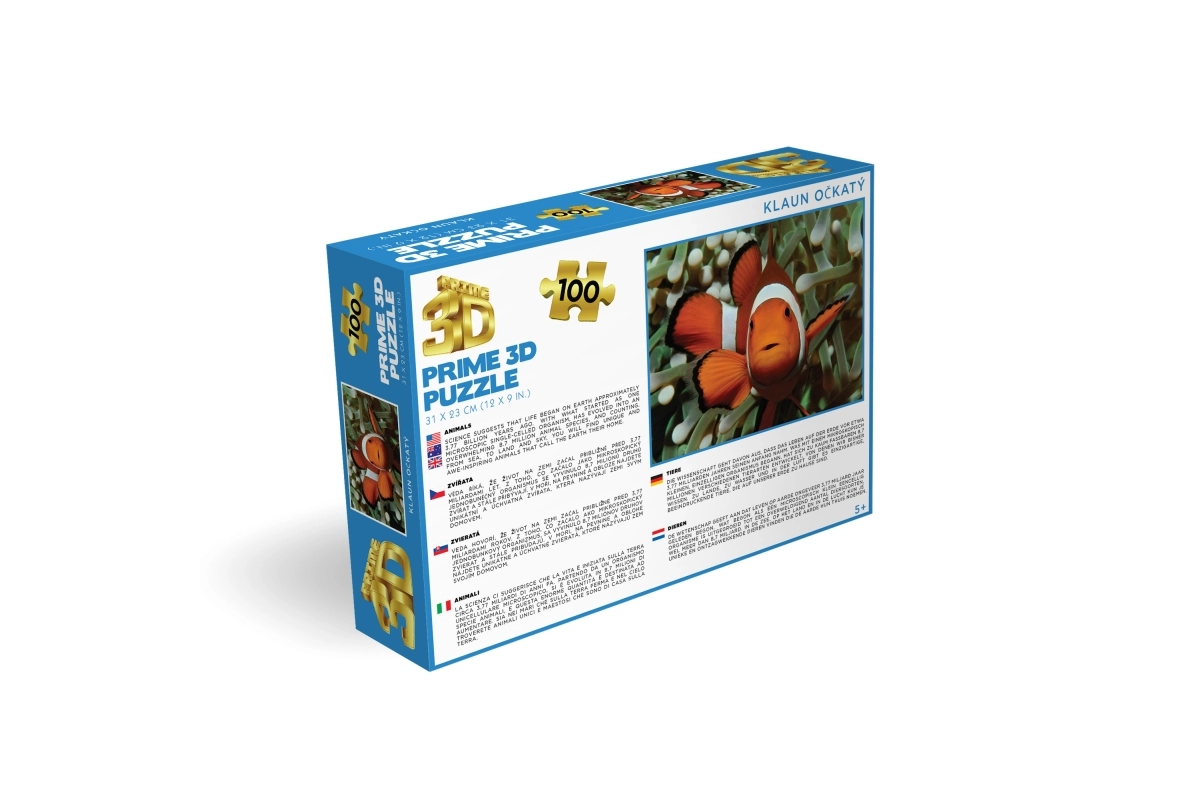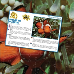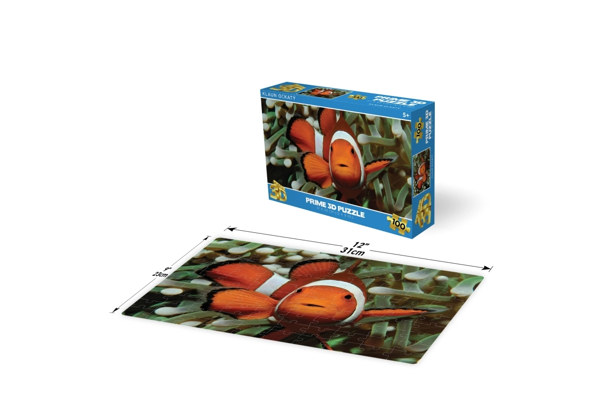 Det lentikulære 3D-billede med klovnefisk imponerer med dybde og mættede farver. Den overskuelige æske angiver antal brikker og mål for nemt valg.
